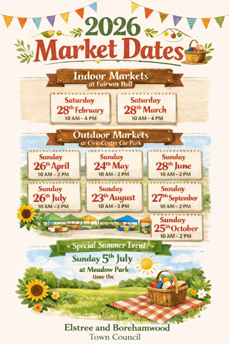 For more information or to become a stall holder contact market@elstreeborehamwood-tc.gov.uk